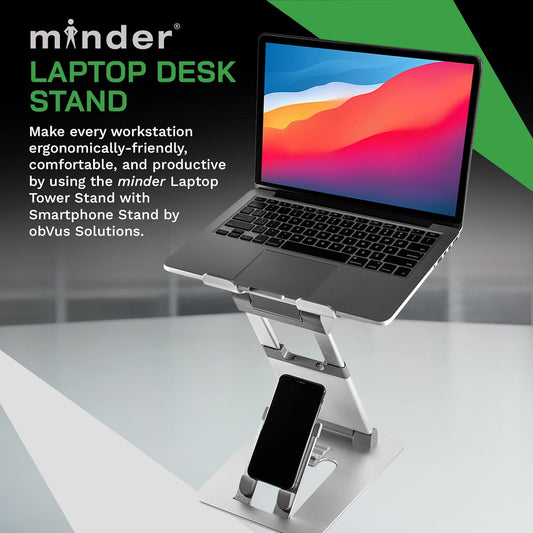 Laptop Stand with Phone Holder | Perfect for Laptops, Macbooks & Tablets with All Screen Sizes | Helps to Reduce Back and Neck Pain