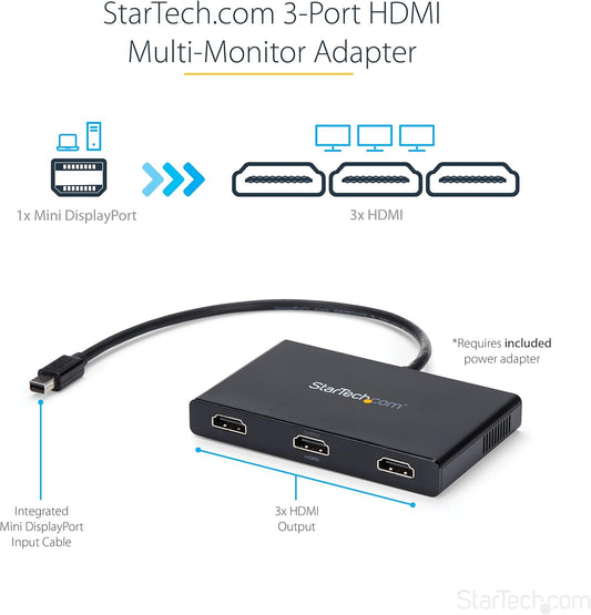 .Com 3-Port Multi Monitor Adapter - Mini Displayport to HDMI MST Hub - Triple 1080P/Dual 4K 30Hz - Video Splitter for Extended Desktop Mode on Windows Only - Mdp 1.2 to 3X HDMI (MSTMDP123HD)
